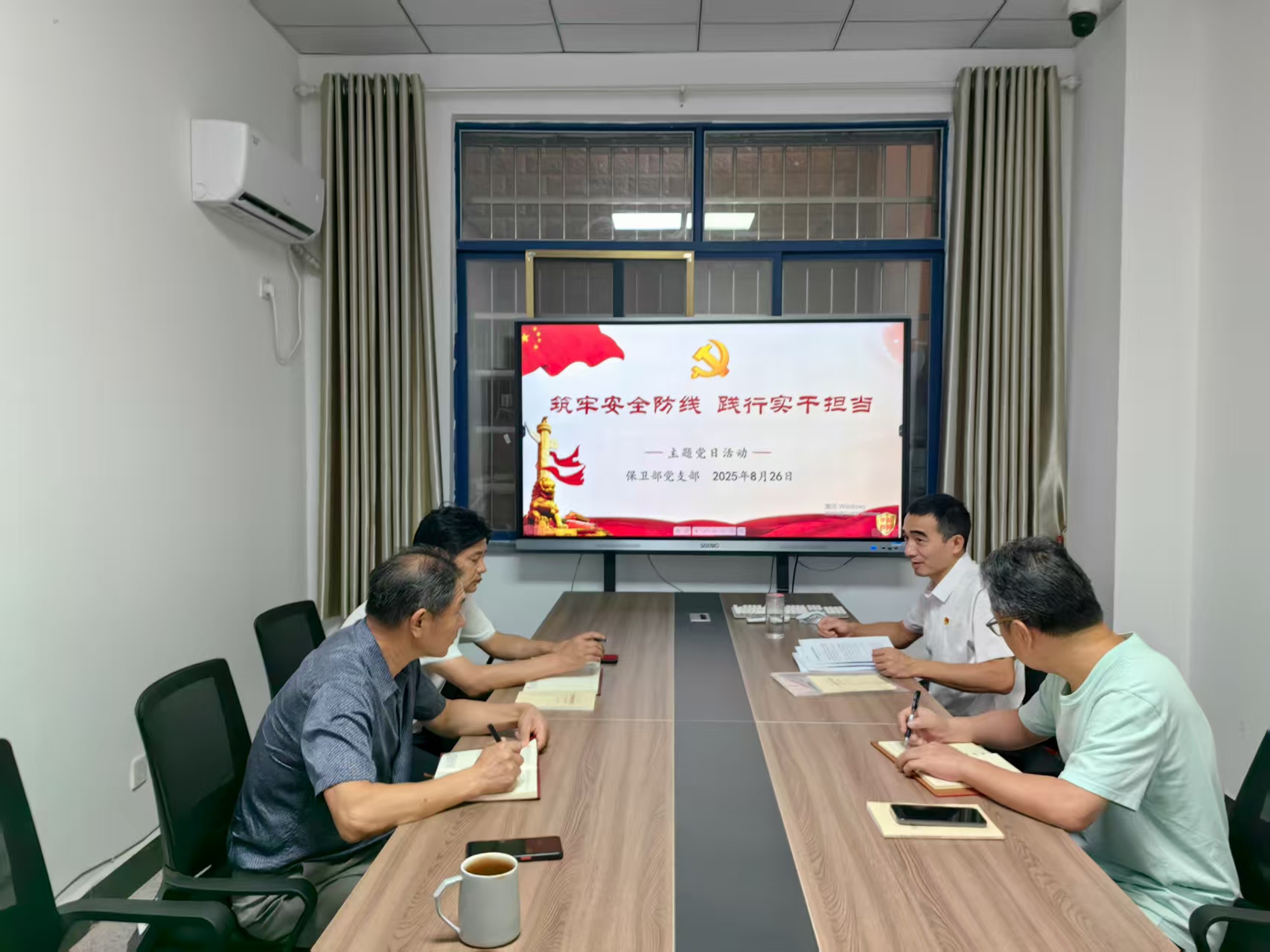 (通讯员:杨家林)2025年8月26日星期二,保卫部党支部于崇德楼B110会议室组织召开了以“筑牢安全防线,践行实干担当”为主题的党日活动。