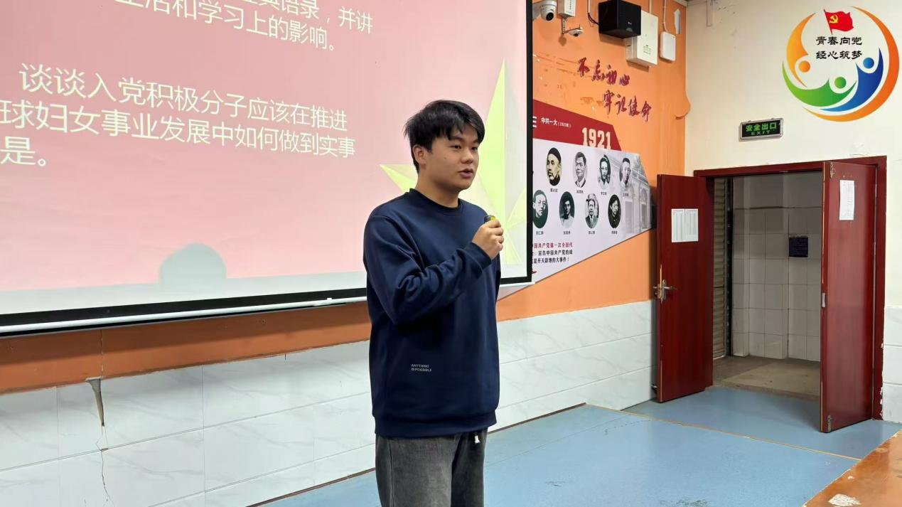 活动过程中,主持人组织全体同学认真观看了专题视频,并围绕入党积极分子的成长路径作了重点阐述。他强调,大家要始终在党的指引下,持续练就过硬本领、不断深化思想淬炼;既要精读理论著作的“有字之书”,也要勤耕实践沃土的“无字之书”,在实干中磨练意志、提升能力,真正做到知行合一、担当使命。