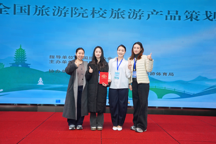 2025年11月23日,第三届全国旅游院校旅游产品策划大赛在浙江省舟山市圆满落幕。湖南商务职业技术学院旅游管理学院由黄若蓝、张玉老师指导,李碧庆、叶静、廖思雨、曾圆圆四位同学组成的“拾光者联盟”团队,历经多轮激烈角逐,最终脱颖而出,荣获大赛特等奖,展现了学校在旅游产品创新策划与高素质技术技能人才培养方面的卓越实力。