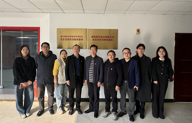 为深入贯彻落实党建引领高质量发展的工作要求,搭建校地企党建共建共享新平台,12月9日,马克思主义学院党总支会同经济贸易学院党总支与长沙市岳麓区天源社区党总支、湖南唐羽茶叶有限公司党支部隆重举行“党建引领聚合力,共建共荣促发展”校地党支部共建暨党性教育基地揭牌仪式。天源社区党总支书记、居委会主任毛略滔,唐羽茶叶有限公司党支部宣传委员刘焕馗,党委委员、马克思主义学院党总支书记周政明、经济贸易学院党总支书记谢立靖等共同出席活动。