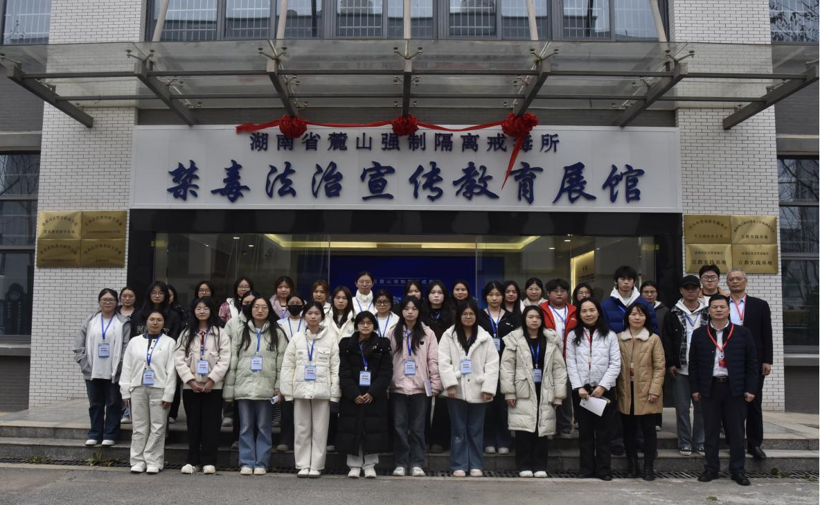 为筑牢青年学生禁毒思想防线,深化法治教育实践成效,12月16日,湖南商务职业技术学院主修《学法时习之——学习习近平法治思想》课程的30名学生,在马克思主义学院乔颍、冯霞等老师的带领下,走进湖南省麓山强制隔离戒毒所禁毒法治宣传教育展馆,开启了一场集知识性、互动性与警示性于一体的沉浸式学习之旅,真正把禁毒法治教育从课堂延伸到实景。