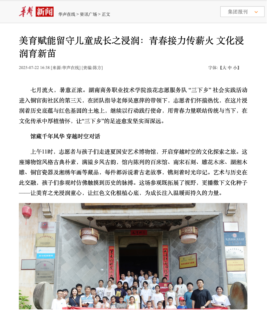 华声在线报道——美育赋能留守儿童成长之浸润:青春接力传薪火 文化浸润育新苗