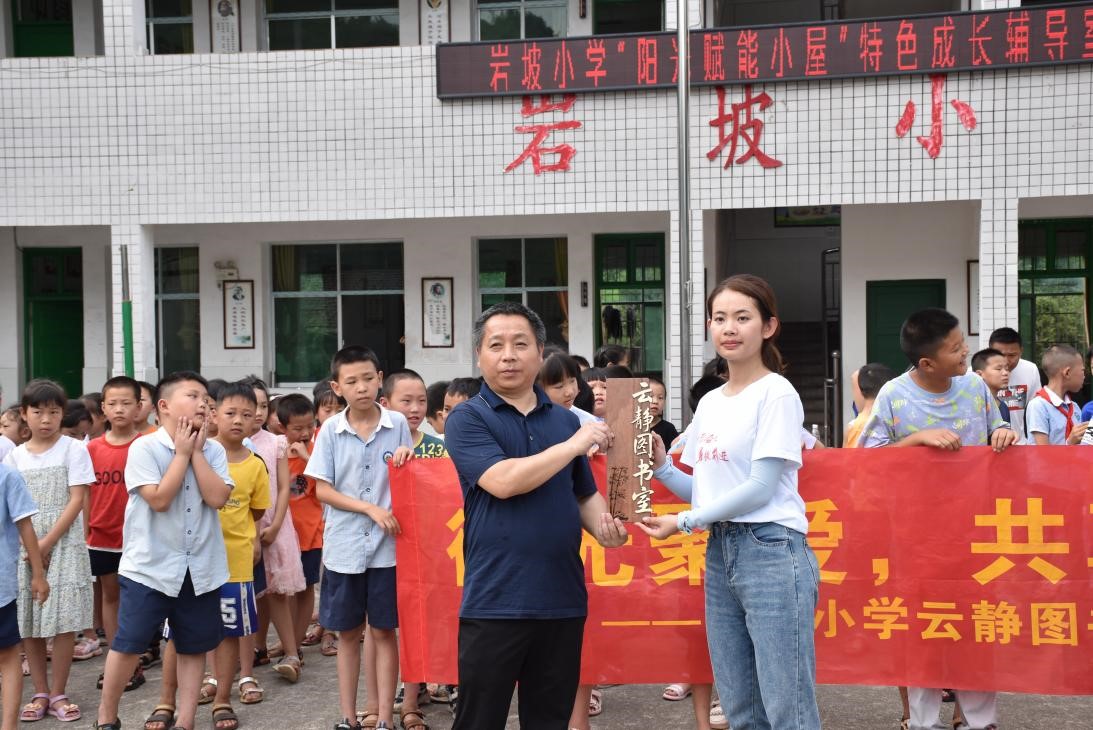 2022年7月7日上午,为弥补山区图书资源的匮乏、丰富留守儿童的精神世界,培养留守儿童积极阳光的健康心态,旅游管理学院“微光心力量赋能向未来”暑期三下乡实践团队赴安化县东坪镇开展“微光聚爱 共享书香”岩坡小学云静图书室捐赠活动,并带来了近万元图书和教学物资。