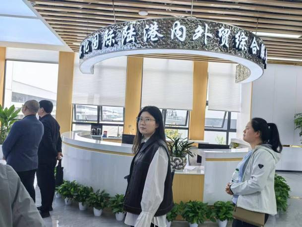 签约仪式后,国际物流学院代表实地参观考察怀化国际陆港内外贸综合服务中心。该中心是怀化国际陆港一站式综合服务枢纽,集聚商务、海关、税务、金融、法律、人才服务等功能,提供报关报检、退税融资、市场对接、人才供需对接、实习就业推荐等全链条服务,是连接企业、高校与人才的关键纽带,为校企合作、实习实训、就业输送提供全流程保障。此次实地走访,为国际物流学院后续深化访企拓岗、建设校外实习基地、精准对接陆港企业需求奠定扎实基础。