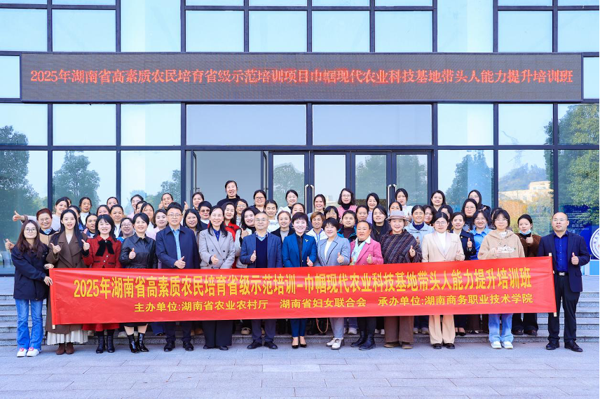 在全面推进乡村振兴的时代背景下,广大乡村女性正以智慧与坚韧投身农业农村发展一线,成为名副其实的“半边天”。培育一支有技术、善经营、懂管理的高素质农民队伍,尤其是发挥乡村女性的重要作用,对推动农业高质量发展、加快农业农村现代化具有关键意义。在此背景下,12月1日,湖南省高素质农民培育省级示范培训项目——巾帼现代农业科技基地带头人能力提升培训班在湖南商务职业技术学院正式启动。