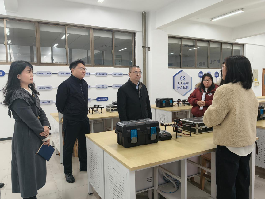 李科与企业专家、专业教师共同实地考察了无人机组装与调试实训室及无人机室外训练场地,详细了解实训设施配置和教学项目实施情况。企业专家立足岗位和行业标准,围绕实训流程优化、设备管理升级及操作规范完善等方面提出专业建议。李科强调,专业团队需认真研究相关建议,持续优化实践教学体系,稳步提升无人机专业实训条件建设水平,切实推动实践教学与企业生产实际深度融合,不断提升无人机应用技术专业内涵建设水平,不断提升学生实际操作能力,不断提升专业人才培养质量。