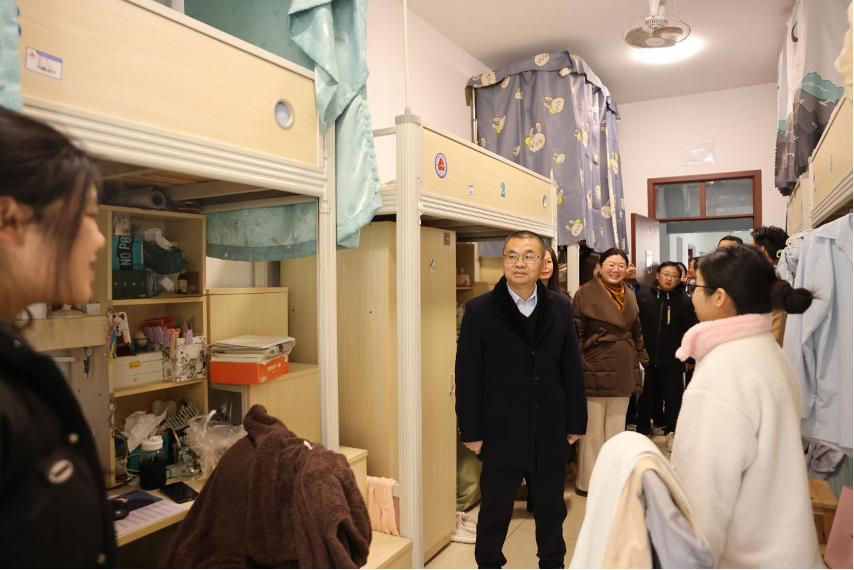 在宿舍内,李科与同学们亲切交谈。每位同学的专业学习进展与实习实践安排,并细致了解大家的宿舍生活、日常起居和人际交往等情况,认真倾听同学们对学校管理服务提出的意见与建议。同学们积极发言,现场交流氛围轻松务实。李科表示,“学生社区是重要的育人阵地,推进‘一站式’学生社区建设,必须紧紧围绕‘以生为本’这一核心,努力为同学们安心学业、舒心生活提供坚实保障。”