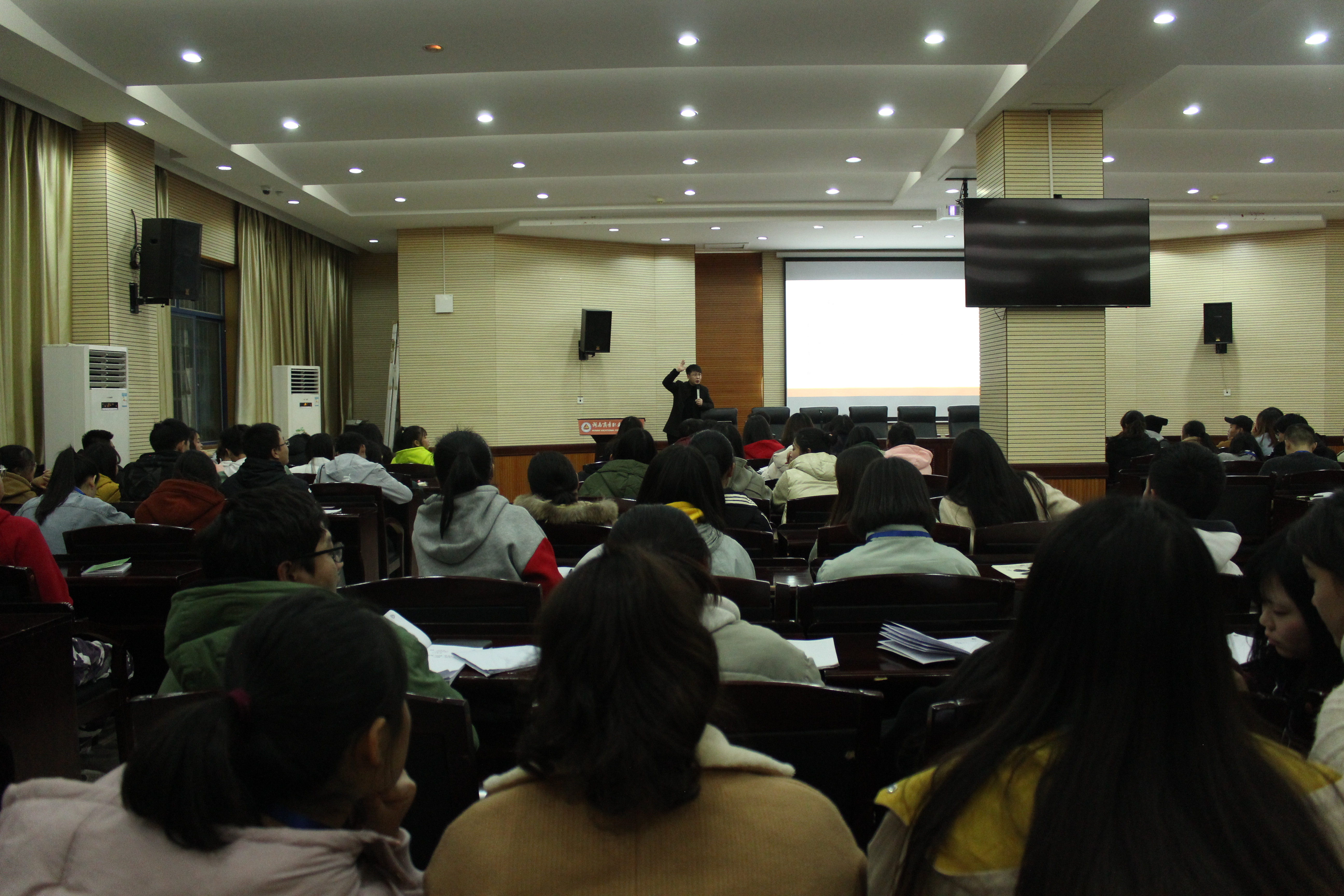 本网讯(通讯员:校网络文化部孙耀)为进一步明确学生干部的发展方向,培养校团学会干部的责任意识、服务意识,实现学生干部队伍的健康发展,从而更好的服务广大学生,2018年12月18日晚上7点学生工作处在学术报告厅开展了以语言艺术为主题的培训讲座,参会人员有第十五届校团学会全体人员。此次培训由辅导员杜凯老师主讲,校团学会副主席唐淑贤负责主持。