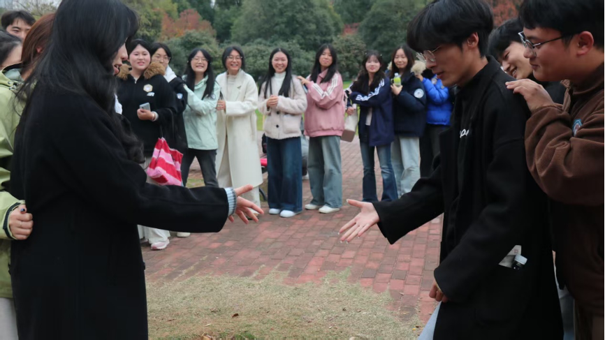 观演结束后,两校区骨干在橘子洲头开展了素质拓展,现场氛围热闹融洽。大家一致认为,此次联合实践活动不仅是一次深刻的思想淬炼,更是一场生动的融合共建课堂。“看到百年前的同龄人早已胸怀“改造中国与世界”的宏愿,我深感作为新时代团学干部的责任重大。”来自外贸校区的青马学员王星阳动情表示,“我们将把这份精神力量转化为服务同学、服务大局的实际行动,在融合发展的新征程中主动作为。”商务校区学生骨干曹荣则谈到:“这次活动让我们两个校区的同学在共同的历史情境中加深了解、增进认同。融合不仅是物理空间的整合,更是思想共识与使命担当的凝聚。”
